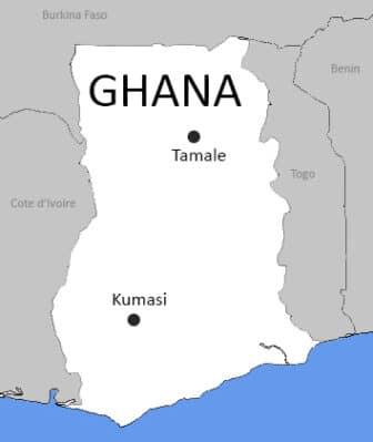 Ghana is situated in West Africa, just north of the Equator. It has a stable, democratically elected government and a population of more than 25 million. Accra, situated on the southern coast, is the largest city with four million people followed by Kumasi with two million.