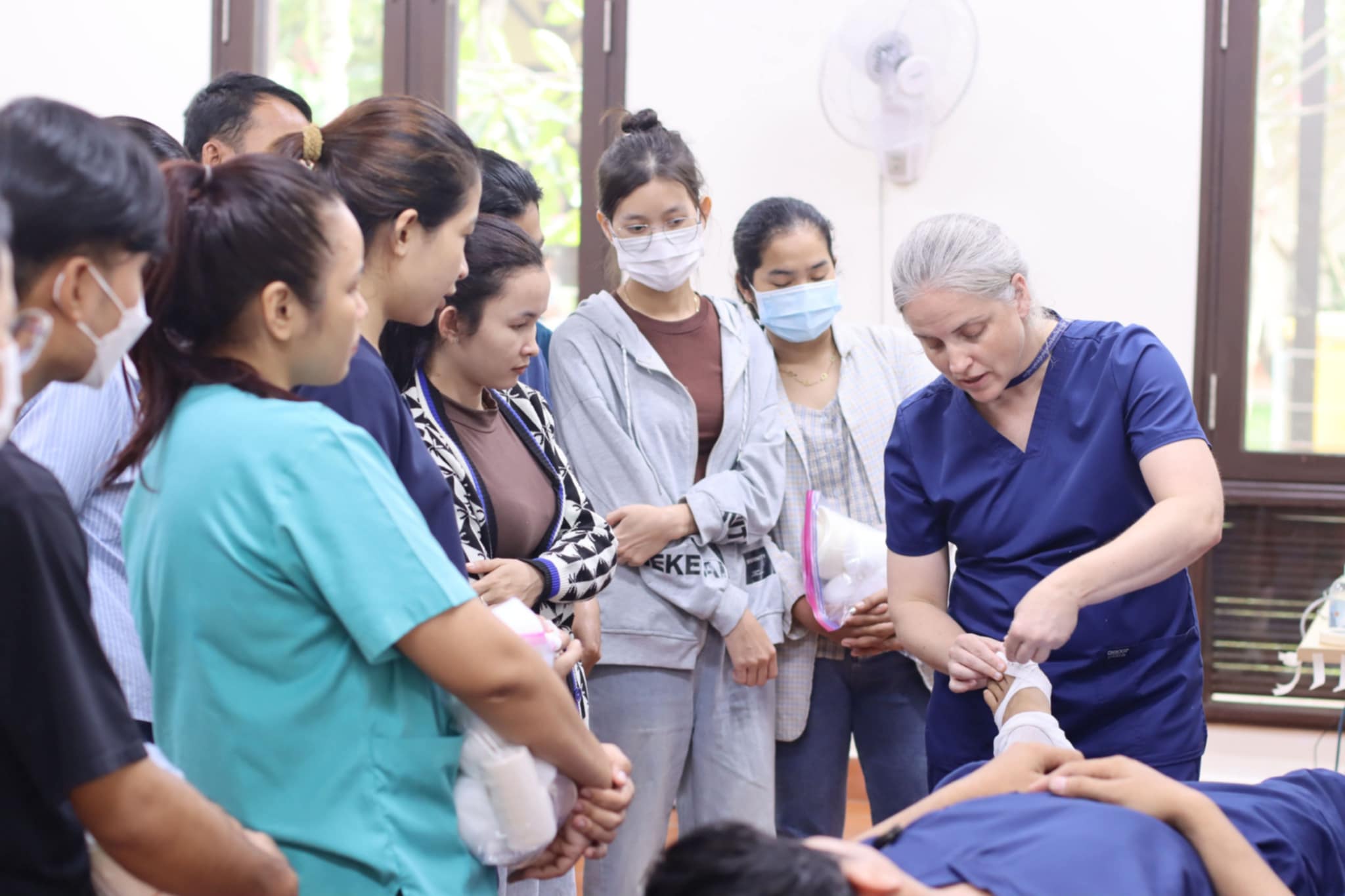 Dr. Richard Henker has been visiting Lao Friends Hospital for Children (LFHC) since 2015, often accompanied by nurse anesthesia students from the University of Pittsburgh. During his trip in the summer 2024, he collaborated with local partners to conduct a successful workshop focused on regional anesthesia for eleven Lao anesthesiology residents. Two of the HVO-trained instructors, Kuelee Lao and Peng An Im, nurse anesthetists at LFHC and Angkor Hospital for Children and HVO Warfield Scholars, then traveled with Dr. Henker to the AANA conference in San Diego to present their research posters. They then proceeded to the University of Pittsburgh, where Mr. Lao and Mr. Im had the opportunity to observe anesthesia practice in the U.S.