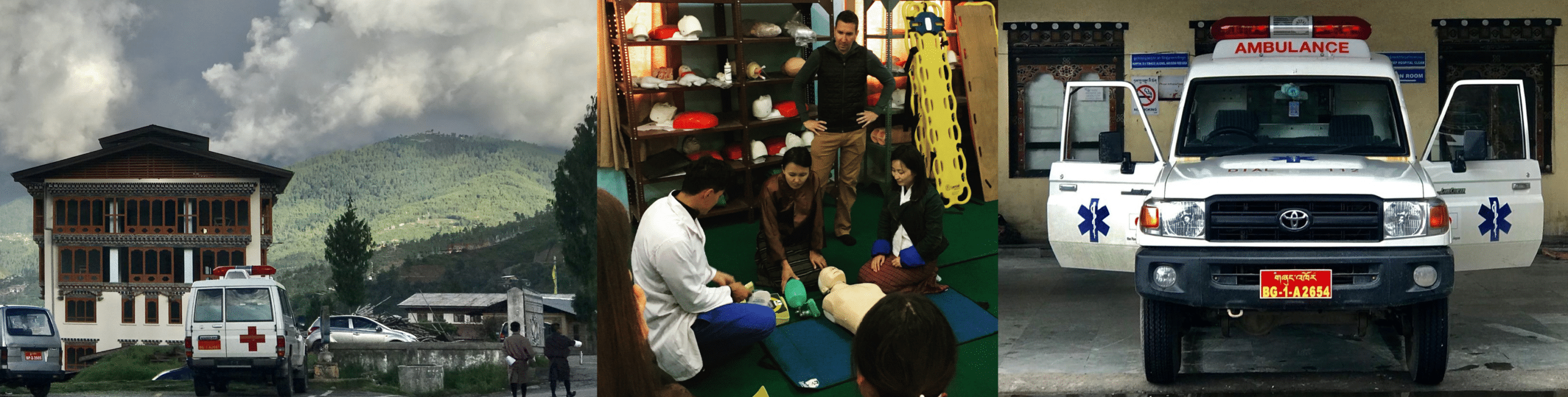 The goal of this project is to improve the pre-hospital ambulance care in Bhutan through training paramedic/emergency medical responder (EMR) students who are completing their clinical placements at the Emergency Department of JDWNRH. Volunteers provide didactic and simulation-based training on a variety of pre-hospital topics to second- and third-year EMR students and field training to third-year students, including riding along in the ambulance for emergency calls and modeling proper patient care.